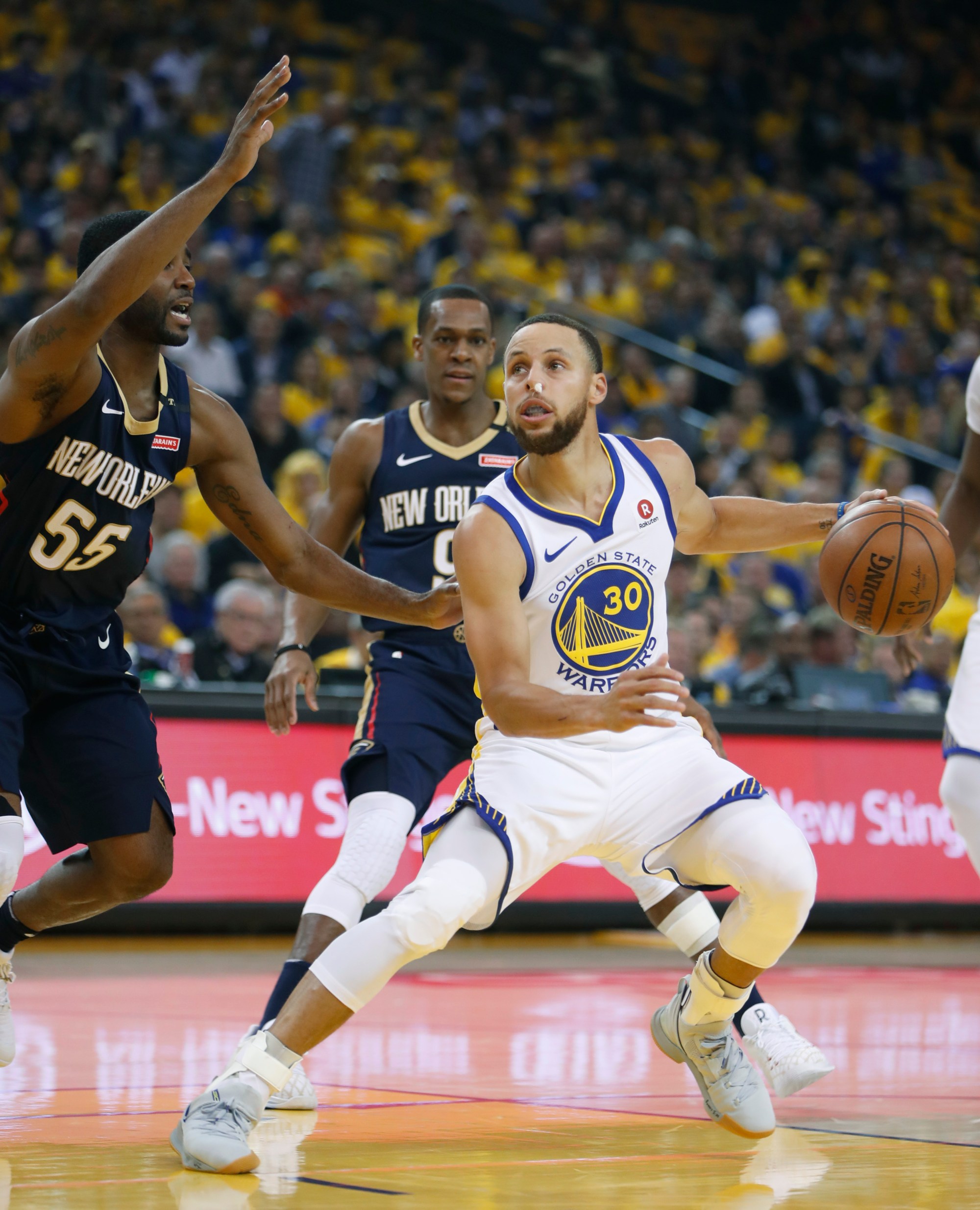 The Golden State Warriors defeat the New Orleans Pelicans 113-14 in Game 5 of the...
